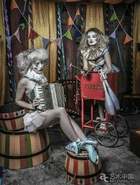 舞美方面,整体采用了老式的场景搭建方法,一切景物的外部造型都会通过【景片】来完成,让观看者仿佛感觉置身于奇幻色调的马戏团中,达到耳目一新的效果。