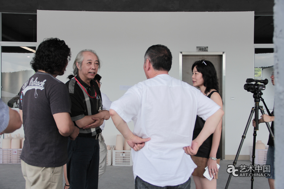 艺术家唐承华、中国美术馆副馆长胡伟、艺术家杨起与中国互联网新闻中心·艺术中国主任勾霞进行交流