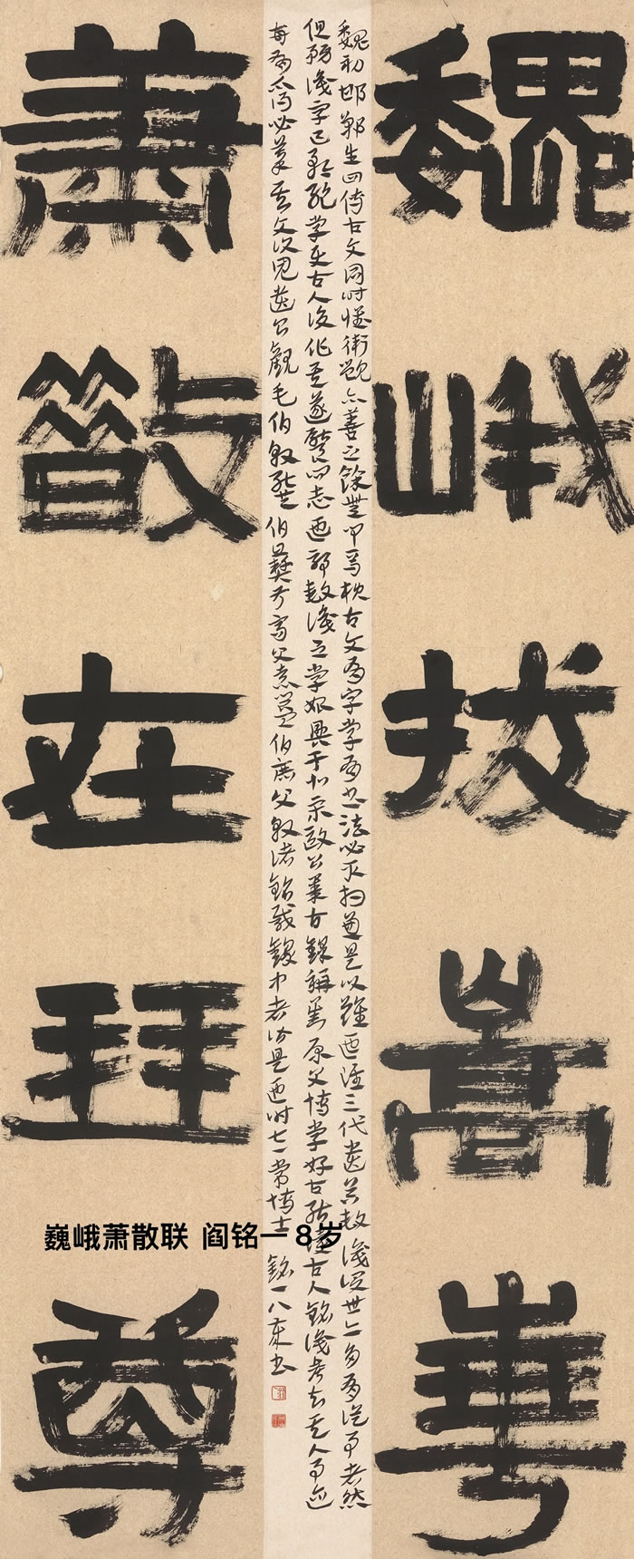 大字苍茫老辣,与中间的章草题跋对比强烈,主次分明相得益彰。