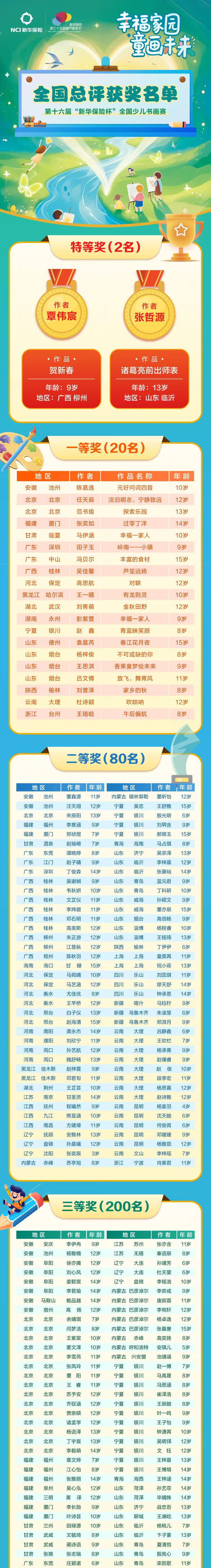 第十六届 “新华保险杯” 全国少儿书画赛全国总评获奖名单: