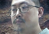 十几年前那个长发披肩,高大俊朗的男生;十几年之后面前这个如同黄河般凝重,宽厚的男人---生活在现实中却又超越现实的年轻画家,岁月的沉淀,不时传来有关他的故事---关于他的人,关于他的画;他要活得纯粹,要活得生动,他的灵魂始终无拘无束地在向着梦想飞翔,一刻都不曾停息---