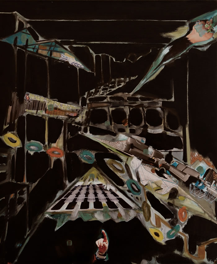 几何迷宫 布面油画 综合材料拼贴 50.4x60.5cm 2016-2017