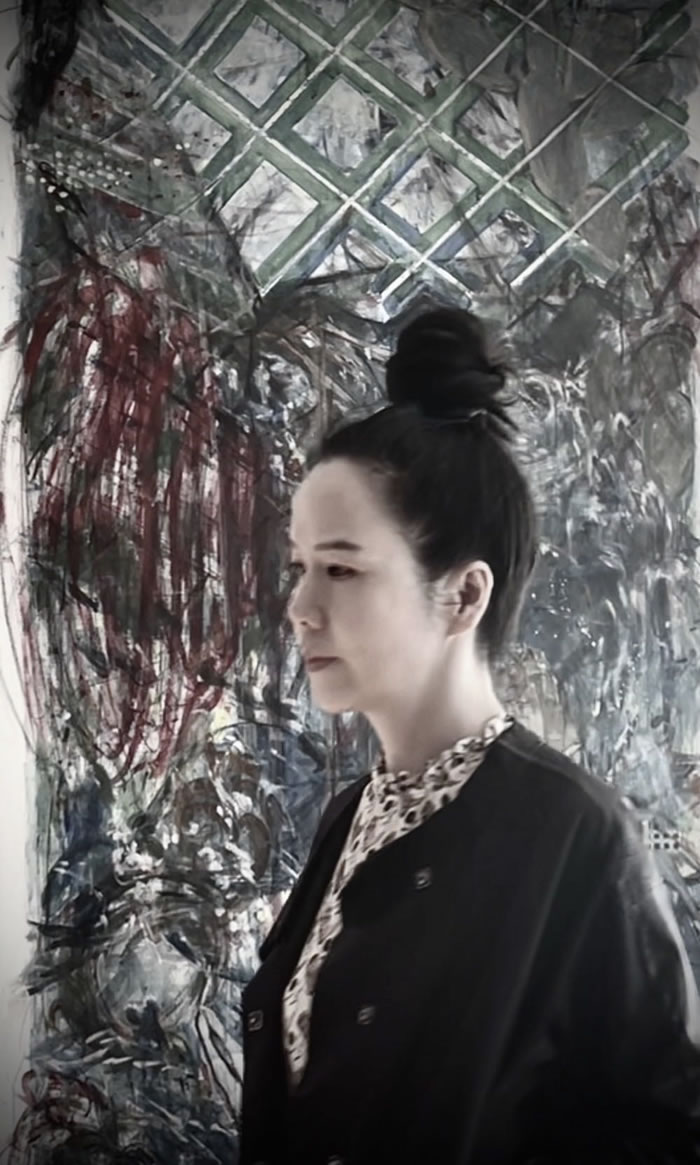 对于她来说,边界是模糊又清晰的,是一个个不断逝去而又不断重新开始的设置,有点像电脑的不断重启,或是生命多元化的不同呈现。在辗转于纽约、伦敦和北京循回的生活中,不同语言、不同文化、不同历史在她身上体现了个体身份不断叠加融合的多重性,在不同的集体关系中,不同的环境体验下的身份感是微妙的、流动的,这也给她的艺术创作赋予了多元文化意识的思考,甚至转变为打破原有概念的实验性,探索着创作的新的可能性。她通过一系列综合材料的运用、现成品的剪贴、多种颜料的使用、多维度的线性装置等形式,以个性化的视角重组碎片化的当代生活,试图打破性别、年龄、地域、文化甚至身份的界限。