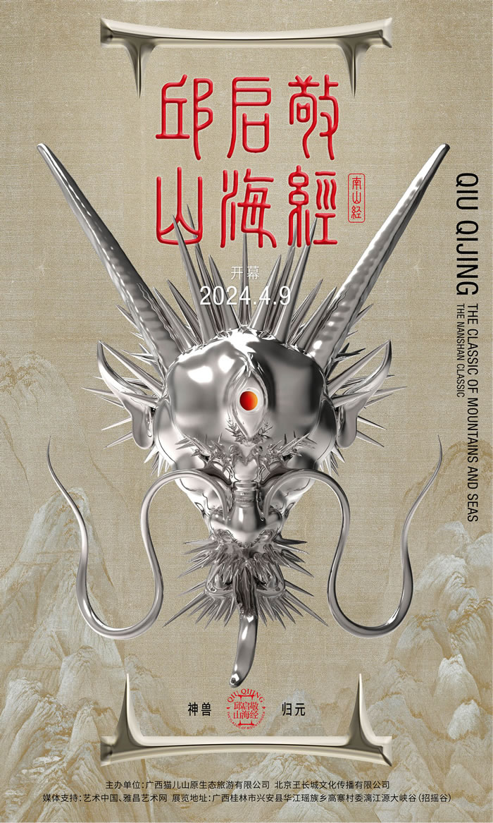 2024年4月9日,山花海树神兽归元——邱启敬“山海经”大型公共艺术巡展首站将于广西桂林猫儿山正式开幕。这是邱启敬“山海经古地图”系列之“南山经”大型公共艺术巡展的首站。