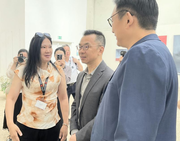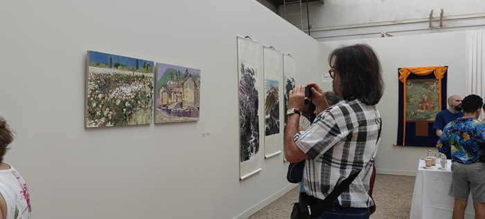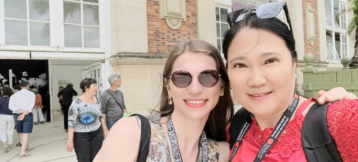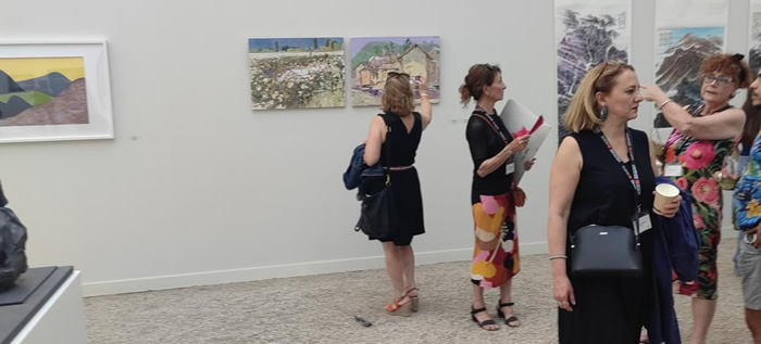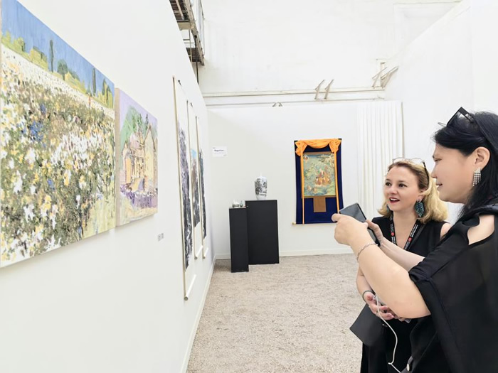 参展期间,杨静与各国的参展艺术家们互动交流,探讨艺术创作的相关内容。