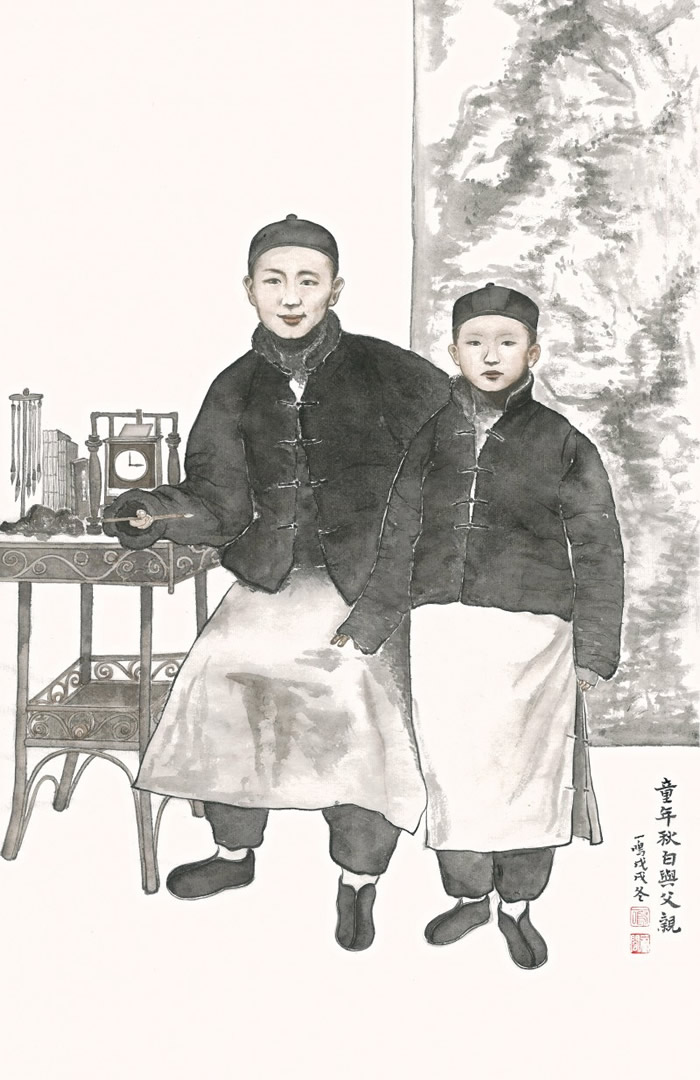 童年秋白与父亲(原作展于瞿秋白纪念馆) 纸本 40cm×53cm 周一鸣 2019