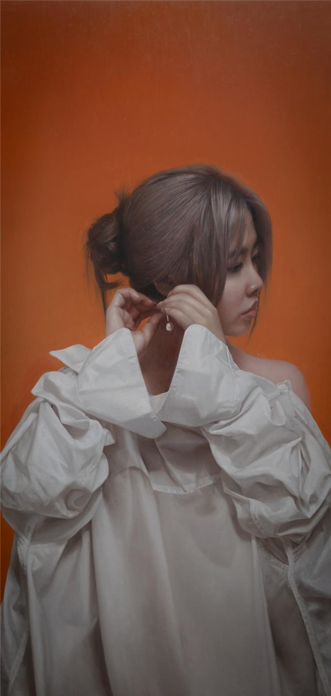 雨星的珍珠耳环Yuxing’s Pearl Earrings 95*45cm 木板油画oil on panel 2024 柳炫竹Liu Xuanzhu