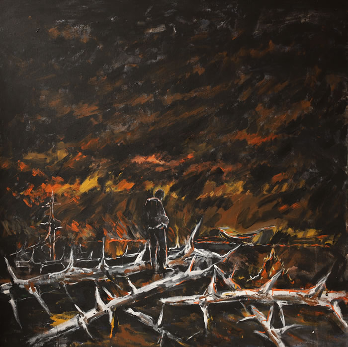《灰烬大地》,160×160cm,布面丙烯,2023