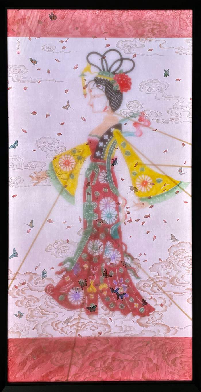 步步娇 194cm×99cm 绢本水墨设色、变频灯箱、皮影 2025