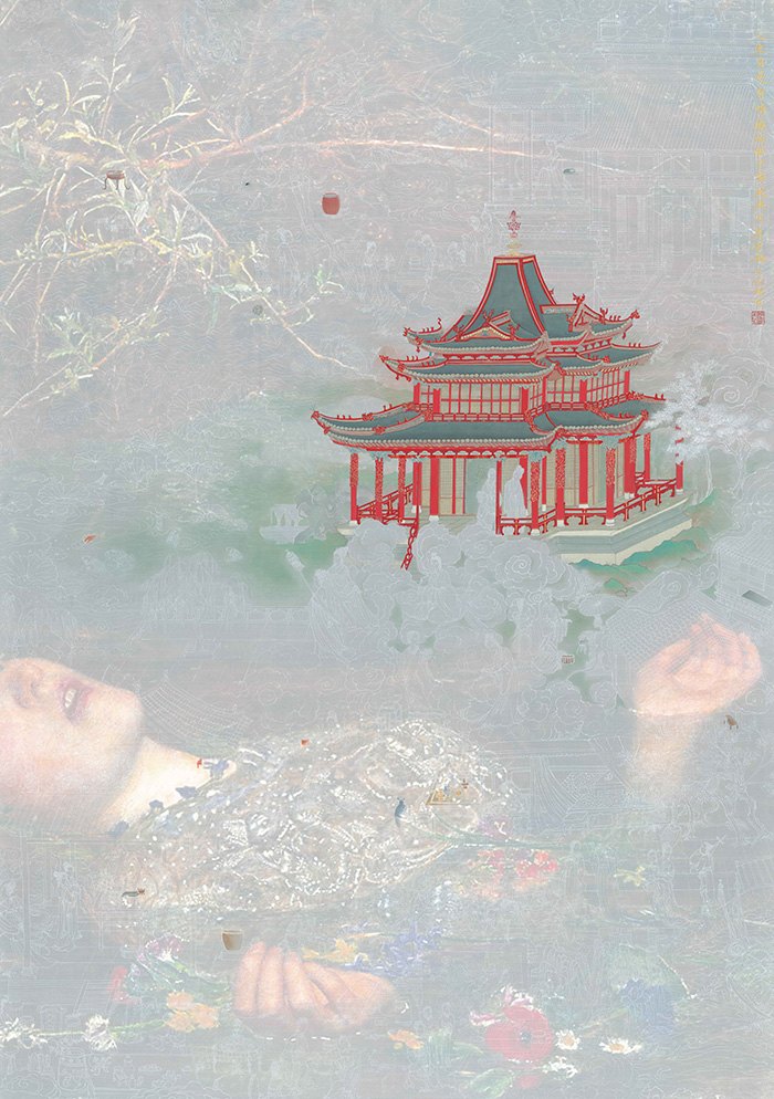 王依雅从中国历史中的物象与文本出发,注重抒发个体对生命与文化精神的省思。她以“灼灼其华”为主题,重构仕女、皇后冠、仙观楼阁、花卉等视觉元素,呈现出一个具有超感知特质的中国女性空间。展览将展出其新近创作的“水上可安居”“繁空录”“痴园”“女诫”等系列绘画与装置作品20余件。