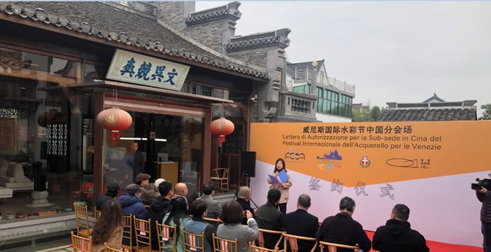 2023年3月29日,威尼斯国际水彩节中国分会场签约仪式在浙江海宁梁家墩零一美术馆举行。意大利文化与艺术协会秘书长詹·帕多万,著名艺术家、零一美术馆馆长马百齐,盛鑫煜艺术创始人、本届威尼斯国际水彩节策展人张鸿宾,《收藏》杂志副总编、本届威尼斯国际水彩节组委会秘书长季英伦,嘉兴文学院(嘉兴市文化艺术研究中心)院长薛荣,海宁市文旅体育局副局长陈培杰,江苏水彩研究秘书长沙金华,以及来自全国的众多水彩艺术家出席并见证了本次签约仪式。