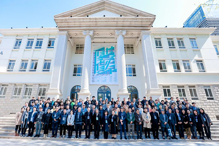 参会领导嘉宾和专家学者在天津美术学院主楼前合影