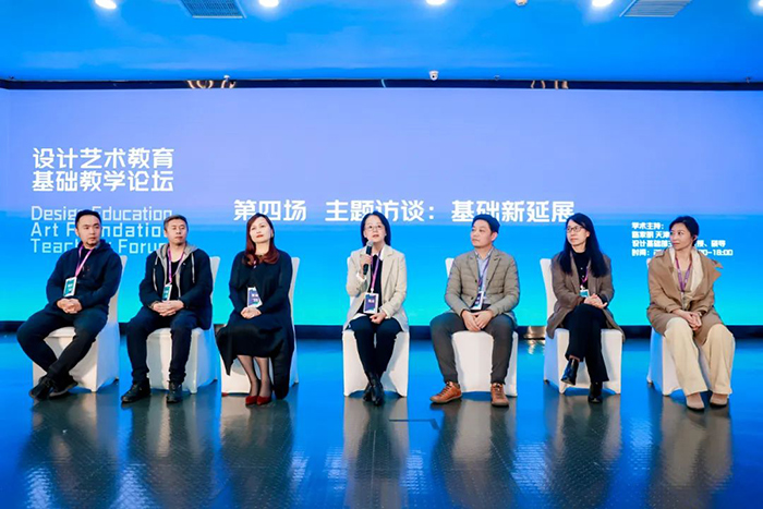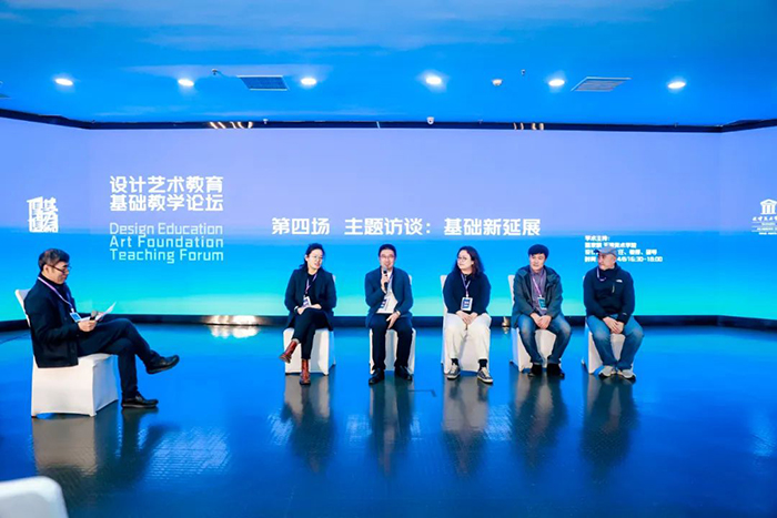 第四场论坛聚焦“基础新延展”主旨,以主题访谈的形式开展,天津美术学院设计基础部主任路家明担任学术主持。在设计学科院长访谈环节,鲁迅美术学院工业设计学院院长薛文凯、湖北美术学院时尚艺术学院副院长胡丽莎、湖北美术学院环境艺术学院副院长何凡、天津美术学院影视与传媒艺术学院院长李通、天津美术学院设计艺术学院副院长蒋松儒、天津美术学院实验艺术学院副院长张锰、天津美术学院环境与建筑艺术学院副院长鲁睿围绕设计学科发展深度对话。在第二组对话访谈中,河北师范大学美术与设计学院副院长张爱民、河北工业大学副教授关鹰、中央美术学院设计学院博士刘昶、北京航空航天大学副教授徐薇子、天津美术学院设计基础部副主任孙有强围绕京津冀协同创新话题广泛交流思想。在个案教学研究访谈环节,湖北美术学院教务处长肖莉、上海美术学院设计系副主任赵蕾、北京服装学院设计基础部主任李栋、天津美术学院设计艺术学院副院长秦文婕、天津美术学院设计基础教学部副教授胡璟辉、天津美术学院设计基础教学部副教授王喜艳、天津美术学院设计基础教学部副教授彭勇分别分享了自己教学研究中的典型案例。