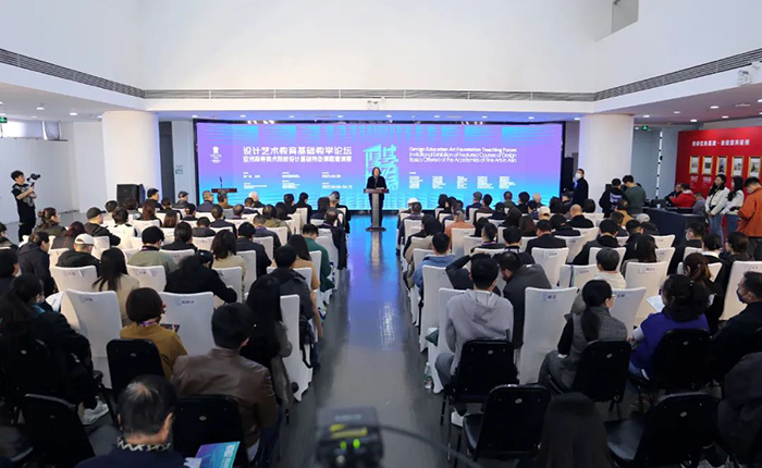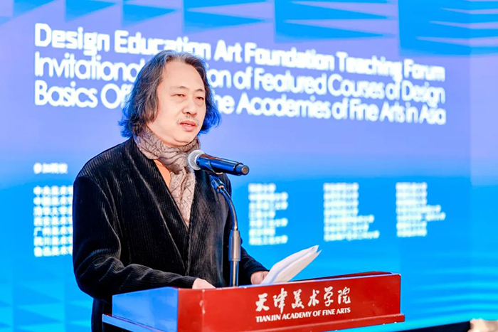 活动当天,参会领导嘉宾和专家学者们围绕论坛主题分别开展了四场论坛。第一场论坛主题为“基础新维度”,由天津美术学院教务处处长、造型艺术学院院长寇疆晖担任学术主持,教育部高等学校设计学类专业教学指导委员会副主任委员、中国美术学院原副院长宋建明以《色彩设计的教与育》为题,鲁迅美术学院副院长赵璐以《设计生成与升维的体系建构》为题,中央美术学院设计学院副院长张欣荣以《基础的升维——教学改革前进中的艺术设计基础教育》为题,南京艺术学院原设计学院院长邬烈炎以《关于主题型、综合性设计基础课程模式的实验》为题,教育部艺术硕士专业学位教育委员会委员、同济大学原设计创意学院副院长范圣玺以《设计基础教育的创造力培养》为题,清华大学美术学院基础部主任邱松以《通识设计基础教育的思考与实践》为题,天津美术学院设计艺术学院院长高山以《厚积薄发,和而不同,守正创新——天津美术学院设计基础的教学维度》为题分别进行了发言。