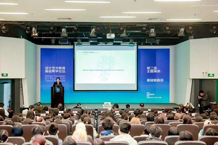 第二场论坛主题为“基础新路径”,由清华大学美术学院基础部主任邱松担任学术主持,武藏野美术大学基础设计系教授小林昭世以《基础设计学的理念与形成》为题,武汉学院艺术与传媒学院院长曹丹以《转变传统造型观念,创新视觉人才培养——我对“何为基础”的一点解读与释怀》为题,同济大学设计创意学院党委副书记张雪青以《观察与创造:Pre-Design教学法》为题,湖北美术学院视觉艺术基础部主任罗实以《高等院校美术基础教育的探讨与实施》为题,中国传媒大学动画与数字艺术学院副院长陈京炜以《融媒体时代设计基础教学实践与思考》为题,河北师范大学美术与设计学院副院长张爱民以《探本求新无界未来——河北师范大学美术与设计学院设计基础教学实录》为题,北京理工大学设计与艺术学院造型艺术系主任周岩以《艺术设计基础课程个案研究成果分享:作为艺术设计基础的色彩课》为题,天津美术学院环境与建筑艺术学院教师郑昌辉以《从形态感知到空间介入——设计学的基础探索》为题,印尼建国大学视觉传达设计系副教授汉尼·维贾亚以《西方艺术史与实践方法》为题分别进行了发言。