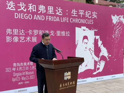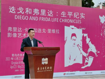 为促进中墨两国的文化交流与合作,由中国对外文化集团有限公司、墨西哥合众国驻华大使馆、迭戈•里维拉和弗里达•卡罗工作室博物馆、青岛市文化和旅游局共同主办,中国对外艺术展览有限公司、青岛市美术馆共同承办的“生命万岁——弗里达•卡罗和迭戈•里维拉影像艺术展”(迭戈和弗里达:生平纪实)于4月23日在青岛市美术馆罗马展厅三楼开展。