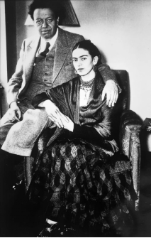 《弗里达与迭戈在婚礼当日,摄于科约阿坎的雷耶斯工作室》摄影/厄内斯托•雷耶斯/1929年8月21日/墨西哥城科约阿坎