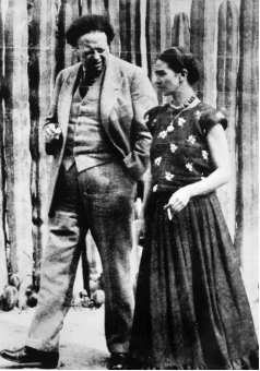 《无题》(迭戈•里维拉与弗里达•卡罗在工作室的仙人掌栅栏前散步)摄影/佚名/1934年/墨西哥城圣安赫尔