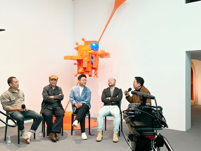 关于雕塑与人工智能等新技术结合的问题,朱尚熹教授表示:事实无数次证明,雕塑是最不拒绝科学技术的一门艺术。这样的结论源自雕塑的造物本质。今天张超展览的主题是涉及AI科技的话题,这件事实本身就说明我们的青年雕塑家对人工智能的敏感,而站在了科技的前沿。材料与技术是雕塑本体的内容之一,张超的实践正说明雕塑话题的延伸和进化。现当代雕塑的百年进程说明,雕塑的概念是动态的,是随着科技进步而不断演进的。百年现代雕塑进化史雕塑经历了雕塑造人,雕塑造物,雕塑造域几个大的阶段。经过数代雕塑人的自觉和努力,在现当代语境下,雕塑与建筑,与景观,与公共艺术,与现当代装置艺术实现了大会师。张超展览以雕塑家的自觉思考了空间维度的问题,以及在地性空间的营造。同时也说明了雕塑的空间性与元宇宙和AI从平面到立体维度的进化趋势并行不悖。硅基生命时代已经悄然叩问碳基生命的大门,最终会取代碳基生命,似乎是具有不可逆转之势。雕塑的未来未知,雕塑人在这个问题上同样是迷茫的。但是有一点是可以肯定的,雕塑的空间属性,与生俱来。而宇宙的基本属性是多维的。在空间维度的语境下,雕塑一定是可以伴随始终的那一位。