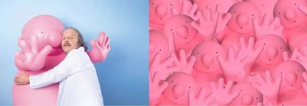 Philippe Katerine 是一位非正统的艺术家,他的作品中一直保留着童心,誓将童趣和可爱主义发挥到极致。Mr. Rose是他最为经典的创作形象——粉红色的身体,圆滚滚的身材,小眼睛大鼻子,胸口上一道醒目的黑色小伤疤(代表着七岁时做过的心脏手术)。Katerine相信虽然所有人都在长大,但内心却可以一直保持着单纯和美好,并希望借助Mr. Rose诠释“可爱主义”,带领大家跟随玫瑰先生的视角,去发现身边的美好,传递“美好无处不在”的艺术理念。