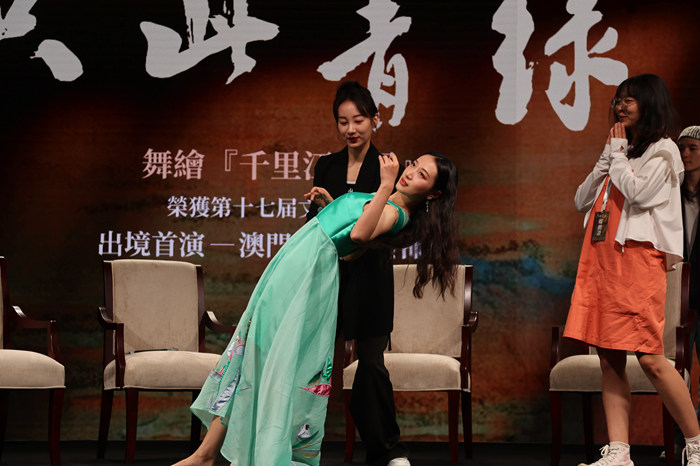 在如此短的时间内,能组织这样一场涉及了澳门11所学校的孩子们前来参加见面会,得益于澳门舞协的大力协助。澳门舞蹈家协会主席梁剑丹表示,《只此青绿》走进澳门校园是“舞艺传承”品牌活动的延续。该活动已在澳门举办多年,将高雅舞蹈艺术推广到澳门学校,推进传承,成为联动澳门与内地高水平艺术界交流学习的重要平台,体现了弘扬舞蹈艺术的澳门担当,推动了澳门舞蹈事业后继有人,蓬勃发展。