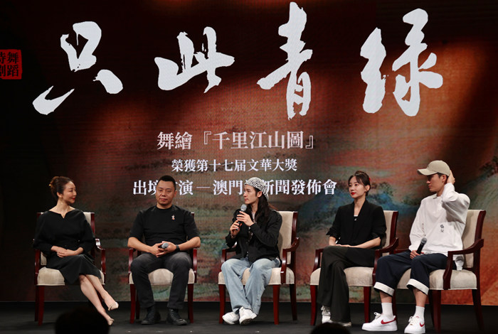 5月24日,在澳门伦敦人酒店,由故宫博物院、中国东方演艺集团有限公司、人民网股份有限公司共同出品的舞蹈诗剧《只此青绿》——舞绘《千里江山图》(以下简称“青绿”)主创团队举行新闻发布会,同时正式对外宣布,8月24日到28日,这部在内地早已家喻户晓并广受大众欢迎和喜爱的舞蹈作品将在中国舞坛“双子星”导演周莉亚、韩真的率领下前往澳门,在威尼斯人剧场连演5天。发布会当天也正式启动售票,金光票务官网和广东省拱北口岸中国旅行社将作为澳门和内地官方售票渠道。