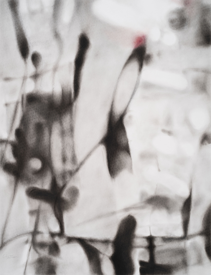 抽象艺术的奠基人康定斯基认为“形越抽象,它的感染力就越清晰和直接”,因为抽象的形态往往能给人留出更开放的想象空间,让观者的联想内容更广泛,思维更广阔……刘兰峰这些作品是粗纹硬纸为基底的,石墨、木炭、色粉等涂抹擦划出的粗颗粒效果,本身就是非常复杂微妙的,刘兰峰选择这些绘画材料的初衷和后果,可见一斑。无定形、非定性的形、色、笔触、划痕、肌理、质感,让转化到画面中的这些潜欲的属性和强度更显复杂微妙,需要敏感的眼睛和心灵来反复感受、仔细辨认、应目会心、心领神会。