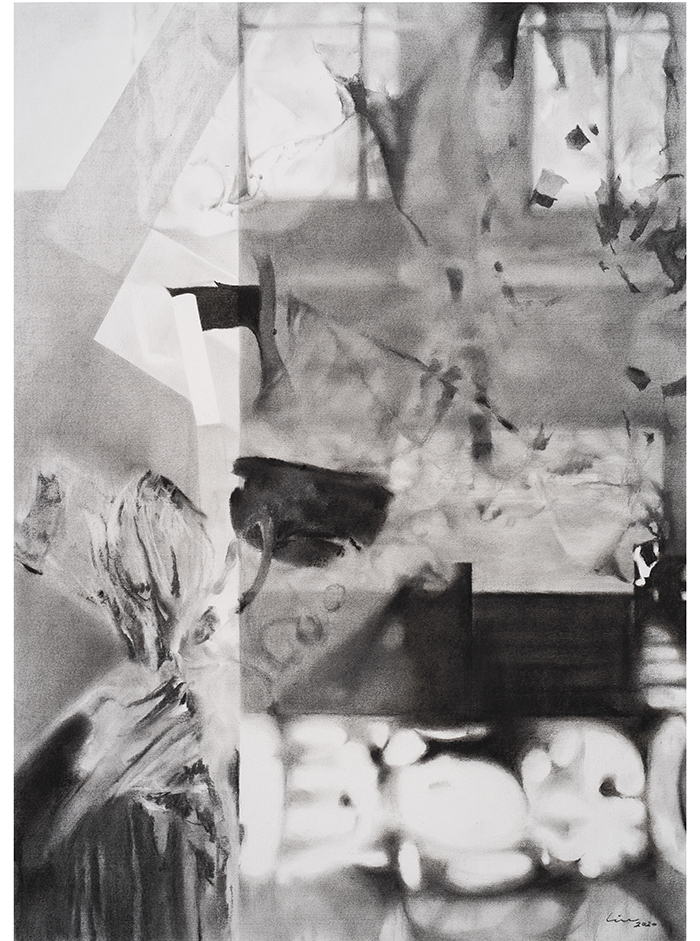《光2》,石墨、木炭、炭精、色粉、彩色铅笔,65.8x50.4 cm, 2020年