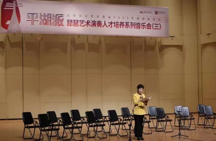 由北京文化艺术基金支持、中央音乐学院主办、中央音乐学院民乐系协办的“平湖派琵琶演奏人才培养”项目系列音乐会第三场近日在中央音乐学院歌剧音乐厅举办。音乐会是平湖派琵琶培训班3场音乐会中的最后一场,是平湖派琵琶演奏人才培养项目两个阶段、共计30天集中培训的成果展示。与前面两场音乐的演奏者有所不同,本场音乐会的阵容除了25位来自全国各大院校、院团的青年演奏骨干外,还有5位项目培训专家曾庆蓉、王劲梅、郭少华、张鸣、任畅登台表演。