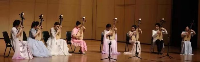 此外,还有8位学员齐奏的《平沙落雁》和全体学员共同演奏的《淮阴平楚》。音乐会由项目负责人、中央音乐学院民乐系主任兼非物质文化遗产保护与研究中心主任章红艳教授主持。