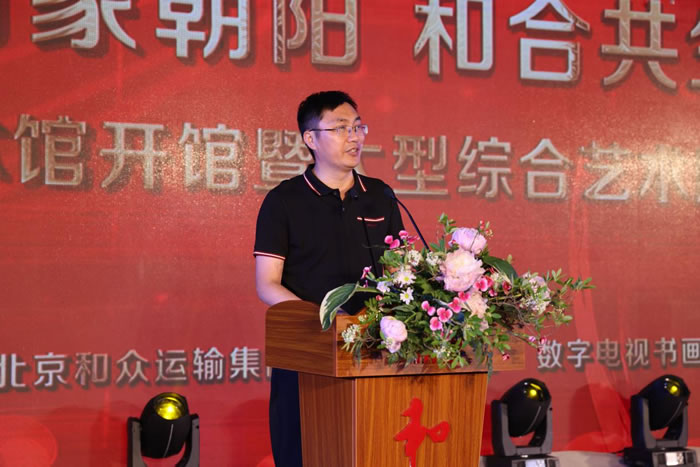 喻存根代表乡政府及相关领导对和·艺术馆的成立表示衷心祝贺,期望和·艺术馆能立足人民与时代,把文化精品带给广大人民群众,为朝阳地区文化产业建设做出贡献。