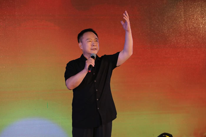 宋少波首先讲话,代表和众集团对各位领导嘉宾的支持表示感谢,同时他介绍了和·艺术馆的功能定位和近年来的重要活动,表示和·艺术馆将坚持做文化传承使命的承载者与践行者,为广大书画家提供一个交流互鉴的平台。