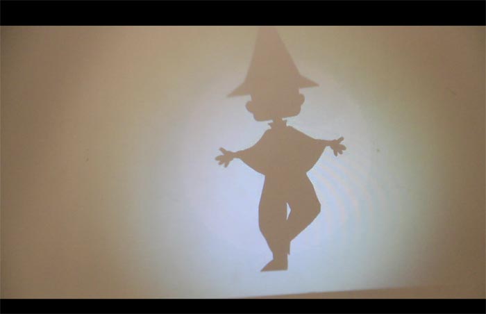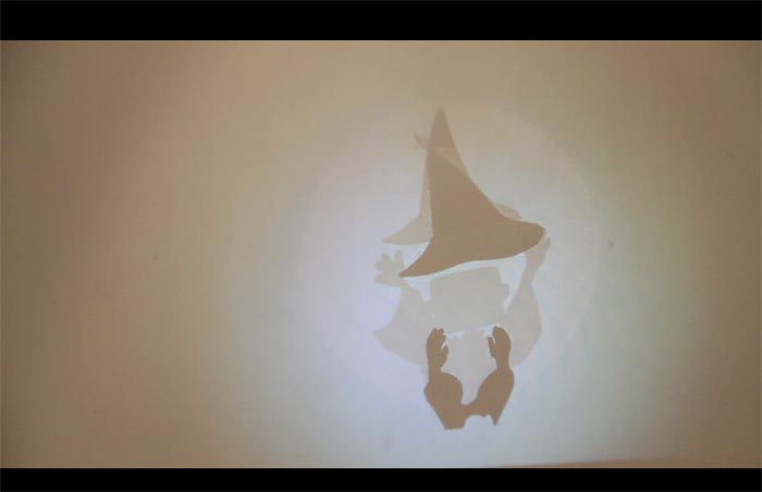 互动影像被投至墙上(抽象图案)互动影像被投至墙上(形象小人)小人钻入土中(向下手势)
