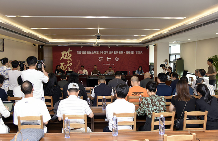 2023年7月22日,在“大红袍”出版30周年之际,人⺠美术出版社美术馆举办“破土而出——龚循明瓷画作品展暨《中国现当代名家画集——龚循明》首发式”。