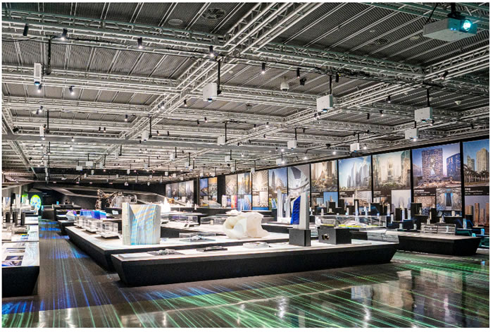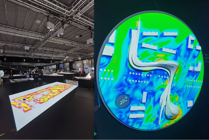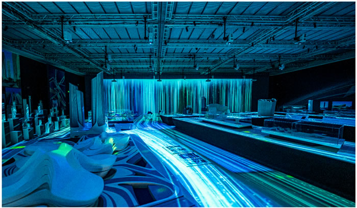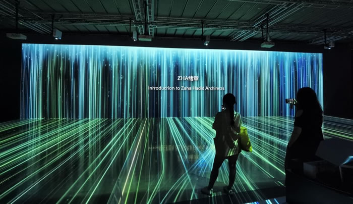 展台后方「元宇宙隧道」通过ZHA虚拟现实空间模拟