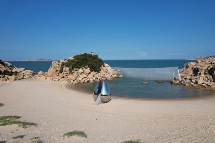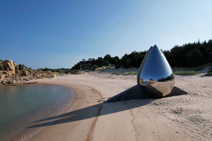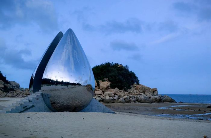 初夏,在中国平潭•坛南湾海滩上,大型海景剧场“星球唤想”项目特邀艺术家景晓雷创作的公共艺术作品《蓝眼泪》悄然登场,正如一个安静美好的守候者,用艺术的方式讲述关于这片星辰大海的故事。