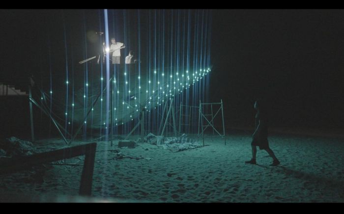 “这里是一个可以让人安心做梦的地方,与它邂逅,是一个偶然的缘分。”艺术家景晓雷回忆时谈到。“23年初我接到项目总策划李谦的邀请,为平潭创作一个有关‘蓝眼泪’的作品。”“蓝眼泪”是一种海洋生物(希氏弯喉海萤)制造的自然奇观,每年4-6月的平潭是属于“蓝眼泪”的季节。“我觉得‘蓝眼泪’是一个悲伤的故事。微小的个体,数以亿万,用生命的代价发出蓝色荧光,换来一场壮丽而凄美的景观,这是专属大海的悲剧式浪漫。”“像弯月形状的静谧沙滩,铺满蓝色荧光的海浪,一群等待爱情的人们……这样一个画面逐渐呈现在我的眼前。”