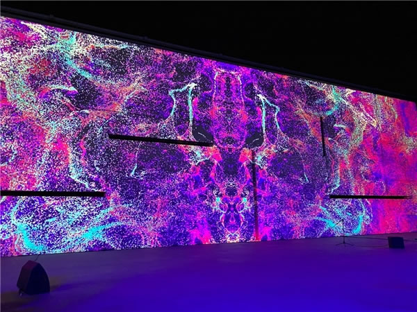 作品《愿望之力》中,通过NEC李白短焦系列激光投影机双机融合,真实还原艺术家在寰宇空间打造的漂浮龟壳飞船,将置身作品前的观众引领进入一个超越时空坐标的艺术世界,凭借深邃沉静的画面,感受着历史的深度和未来的广阔,触发内在的思考和情感,尽情领略艺术与科技交融之美。