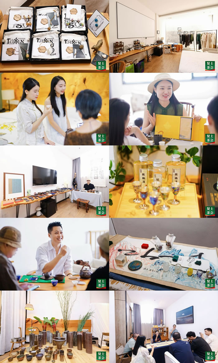 贤士茶会创新汇合三大特色文化体验:一、汇聚一百位具有独立审美的席主打造一百间雅室,分享自己的文化产品,涵盖茶、香、服、花、书画、音乐、空间、文创、美食酒饮等各种元素等,展现出生命的意义,让人们感知生活的美好,为所有来宾带来一场极致的审美体验。