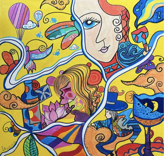 青年艺术家李歆介绍了自己的创作理念和展览内容。展览共分为4个篇章:第一篇章“追古”,以红山文化、仰韶文化、大汶口文化、龙山文化等传统文化出土的陶器、人物形象、符号图案以及数字艺术的造型与立体感相结合,创作出既传承了传统文化又具有时代感的艺术作品。第二篇章“溯今”,以贵州民族特色作品为主线,展现地方色彩(贵州)的画作呈现。画作风格以民族文化故事、优雅和装饰性为特点,把贵州文化充分体现,其中有屯堡文化、阳明文化、贵州桥文化等作品,将新闻插画贯穿展览,宣扬红色文化的爱国主题教育。第三篇章“万象”,带有一种梦幻的浪漫主义氛围,突破传统化,利用黑白线条的节奏感,富有童真主题的丰富画面,把安徒生系列的故事融入其中,展现童趣的视觉体验。第四篇章“无极”,通过给传统文化注入新的血脉,把新时代艺术家的新思想、新作品、新探索展现出来,将以抽象艺术、IP潮玩的形式进行展览,体现一种网红打卡的气氛。
