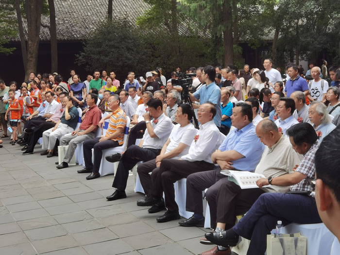 今秋时节,虽然暑气未消,但杜甫草堂里却是人打涌堂,川中书画界的名流大伽、先贤后辈三百余人接踵而至。他们是张作哈、邹瑾、陈智林、王元勇、吕卓、蔡竞、郑晓幸、李兵、宋凯、王吉祥、赵健、梁时民、代跃、姚叶红、吕骑铧、陈仲荣、郭强、舒炯、邓代昆、赵安如等。他们为书坛的一场盛事——“竹里徐行”而来,为书坛的一位泰山北斗而来。这位先生,正是三十年前被李琼久连声赞叹的谢季筠。