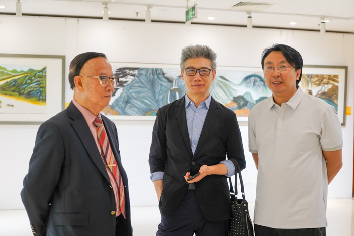 开幕式现场,高朋满座,群贤毕至。出席开幕式的嘉宾有:中共中央宣传部原副部长兼中央文明办原主任,中国文联原党组书记,中国关心下一代工作委员会常务副主任胡振民先生;原中国国家画院院长,中国山水画大家卢禹舜先生;中国美术家协会艺术理论委员会主任,《美术》杂志社总编,艺术理论家尚辉先生;中国人民大学教授,艺术理论家陈传席先生;中央美术学院教授,科研处处长,艺术理论家于洋先生;中央电视台书画频道董事局主席王平先生;中国国际文化交流中心副秘书长梁宇先生;中央文史馆书画院研究员,北京市文史馆馆员,中国人民大学艺术学院中国书画研修班导师,北京文联九洲书画艺术研究会名誉会长,北京东城区美协名誉主席,山水画画家张广志先生;中央电视台节目主持人,画家董浩先生;文旅部大型核心艺术期刊《艺术市场》杂志社总编辑续鸿明先生;中央美术学院人文学院副院长,教授,古代艺术理论家黄小峰先生;首都师范大学副教授,中国文联文艺评论家任军伟先生;中国国际文化交流中心艺术馆馆长洪和文先生;民盟中央美术院副院长何军委先生;原中国作家协会书画院常务副院长,艺术评论家张瑞田先生;港澳台美协主席,艺术家蔡豪杰先生;中国国际文化交流中心艺术馆艺术总监常辉先生。