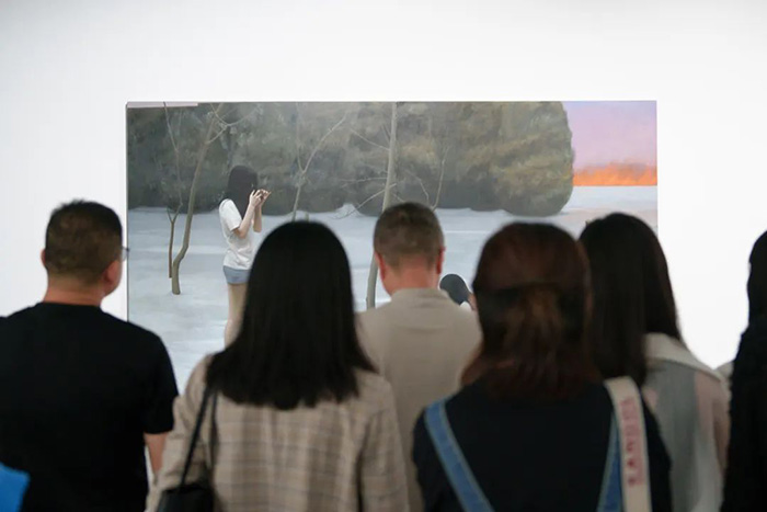 除此之外,展厅还特意设置了“放映厅”这一空间展示薛若哲的影像创作,选取《写生》、《九级风》、《返程》作品,展现了艺术家对于广泛议题的关注、对跨媒介素材的处理,以及对于不同观看模式的探求。影像内容也与展览的“目光”主题相互应和,含蓄蕴藉,一如绘画所呈现的无垠特质。