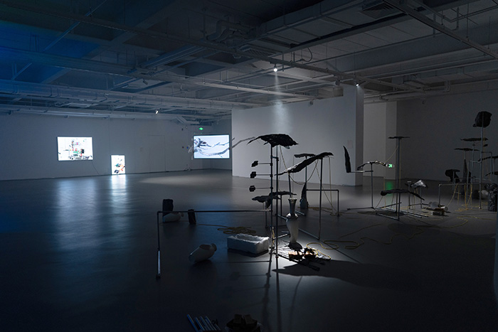 群展“短篇小说”则邀请六位艺术家从绘画、摄影、影像、装置、软件的角度探视雕塑的扩展概念,在展览制造的现场构建临时性的空间叙事。策展人缪子衿分享,此次展览以探讨“雕塑”的扩展概念为主题,美术馆上下两层的空间也为展览的陈设与表达提出了挑战——空间由含着垂视下的自然光的三层开始,经由楼梯到达显得昏黑的暗室,垂直的两个展厅也为艺术家的作品构筑临时性的叙事提供了灵活的空间。