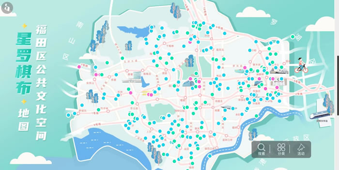 2023年,福田区着力推进文化空间“星罗棋布”计划,构建3级复合文化场景,包括市区级文化地标、街区级文化客厅、嵌入式新型公共文化空间。通过构建多层次的复合文化场景,培育福田区多彩文化交融生境的文体网格,为市民提供日常身边的为市民持续提供文化属性强的健康生活方式。