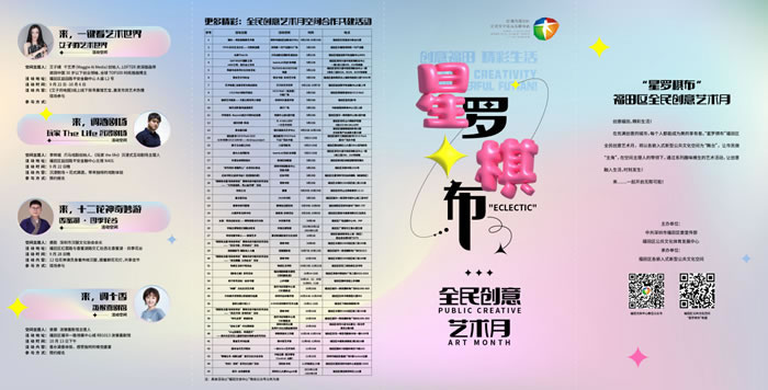 福田区全民创意艺术月是文化、艺术和创意的嘉年华,将为市民带来全新的文化体验、创意氛围、艺术感受,进一步充实大家的精神生活。心动了吗?欢迎您赶快加入进来,一起展现艺术才华、来场文化之旅、迸发无限创意!