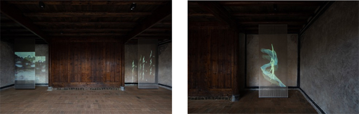 作品借助体感交互技术,让观众在挥手舞动中与古老女书对话,让女书村的文字、风水、花草,都穿梭在这片惊世的美好中......