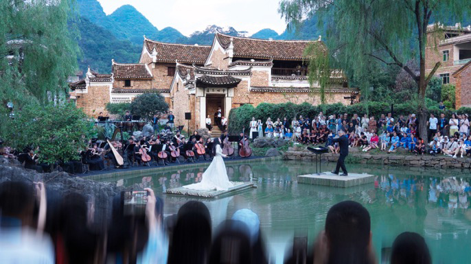 谭盾先生全程倾情策划,2023江永女书国际音乐旅游周内容丰富多彩,涵盖三大重要主题。主题一“女书回家”系列音乐会,围绕着女书的音乐和传统,音乐周将呈现四场穿越时空和传统的音乐会,并隆重揭幕“《女书》音乐馆”;主题二,“农民装置大地艺术展”,在近百万平方米的勾蓝瑶大地上,农民与艺术家们将以装置作品与大地和万物对话;主题三,“爱的回响 教育筑梦”传承女书公益活动。
