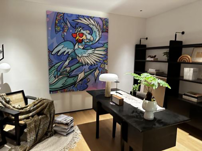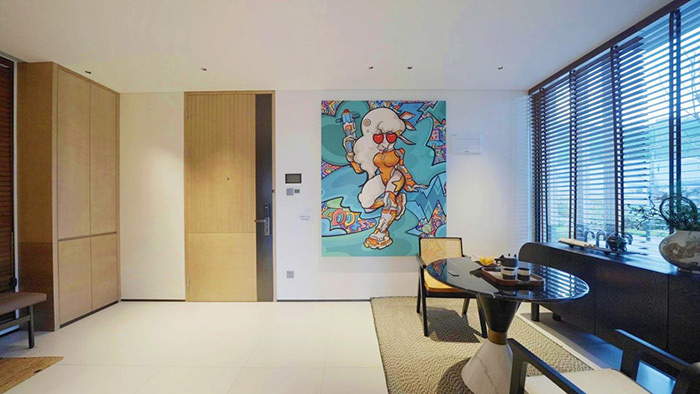 本次潮流艺术展的展出方式亦十分特别,《心动系列》、《十二生肖》、《十二星座》等任萌作品系列,皆以植入在项目营销中心、样板间等形式展出,打造“艺术即生活,生活即艺术”的生活氛围。据悉,本次展览将一直持续到11月29日。