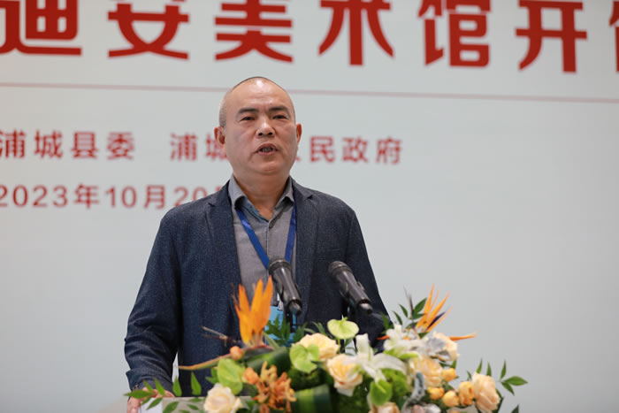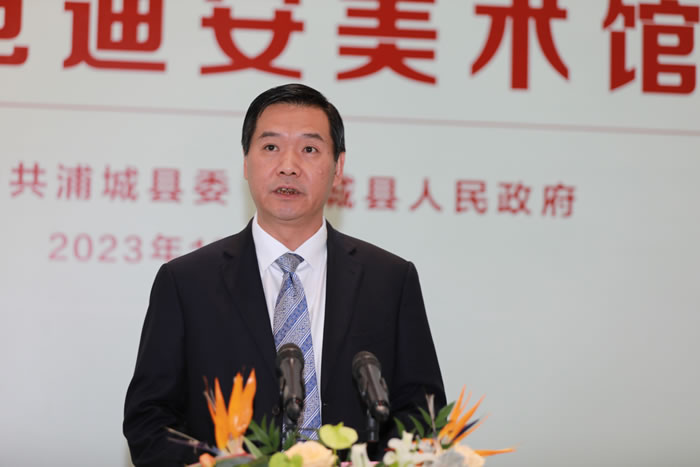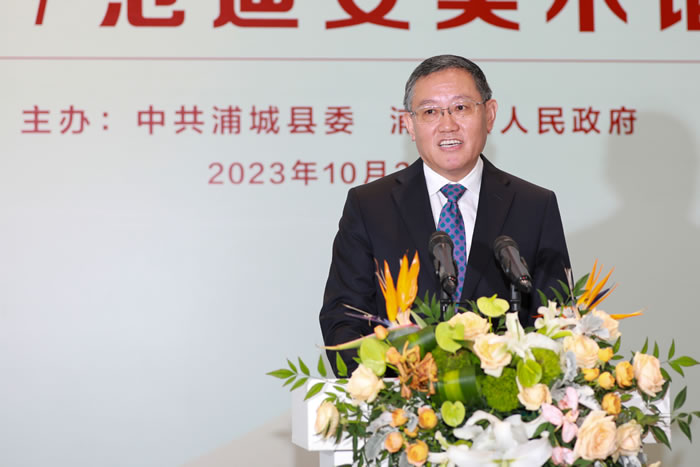 福建省人大常委会副主任袁毅在致辞中表示,浦城美术馆/范迪安美术馆建成开馆,成功填补了闽北地区文化事业建设上的空缺,也是目前全省规模最大、功能最全的专业公共美术馆,对我省文化发展的意义非常重大,将成为文艺建设的新阵地、公共文化的新平台、文化强省的新亮点、“福”文化的新载体。南平市要抢抓美术馆开馆的重大机遇,深入学习贯彻习近平文化思想和习近平总书记来闽考察重要讲话精神,按照省委、省政府全面推动文化强省建设的决策部署,充分用好这张名片,打造福建“会客厅”,进一步打响闽北文旅产业品牌,提升“大武夷旅游圈”竞争力,在建设文化强省中彰显新担当、新作为。